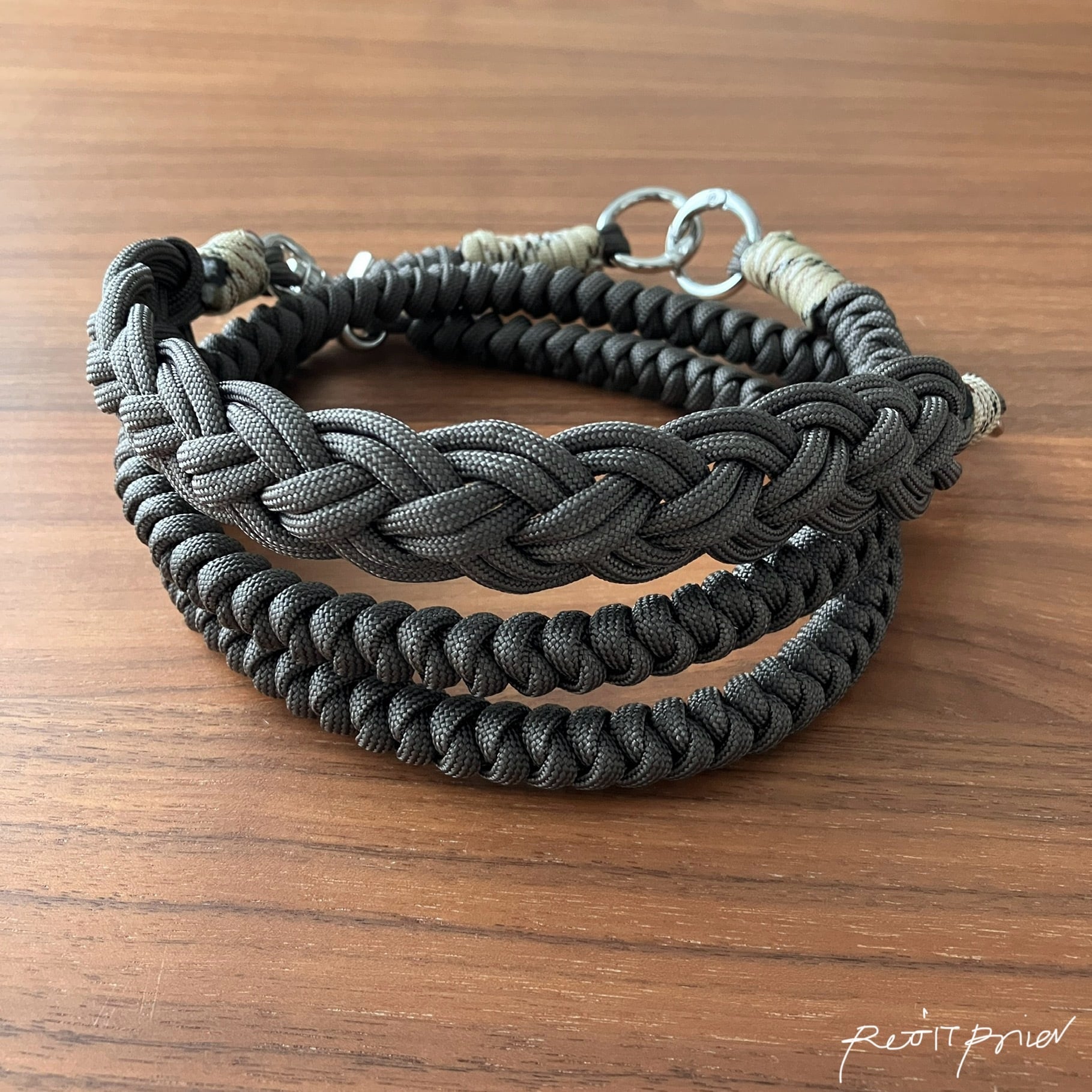 №91. パラコード2wayスマホショルダーハンドストラップ ーニットー(チャコールブラックxカモフラ)