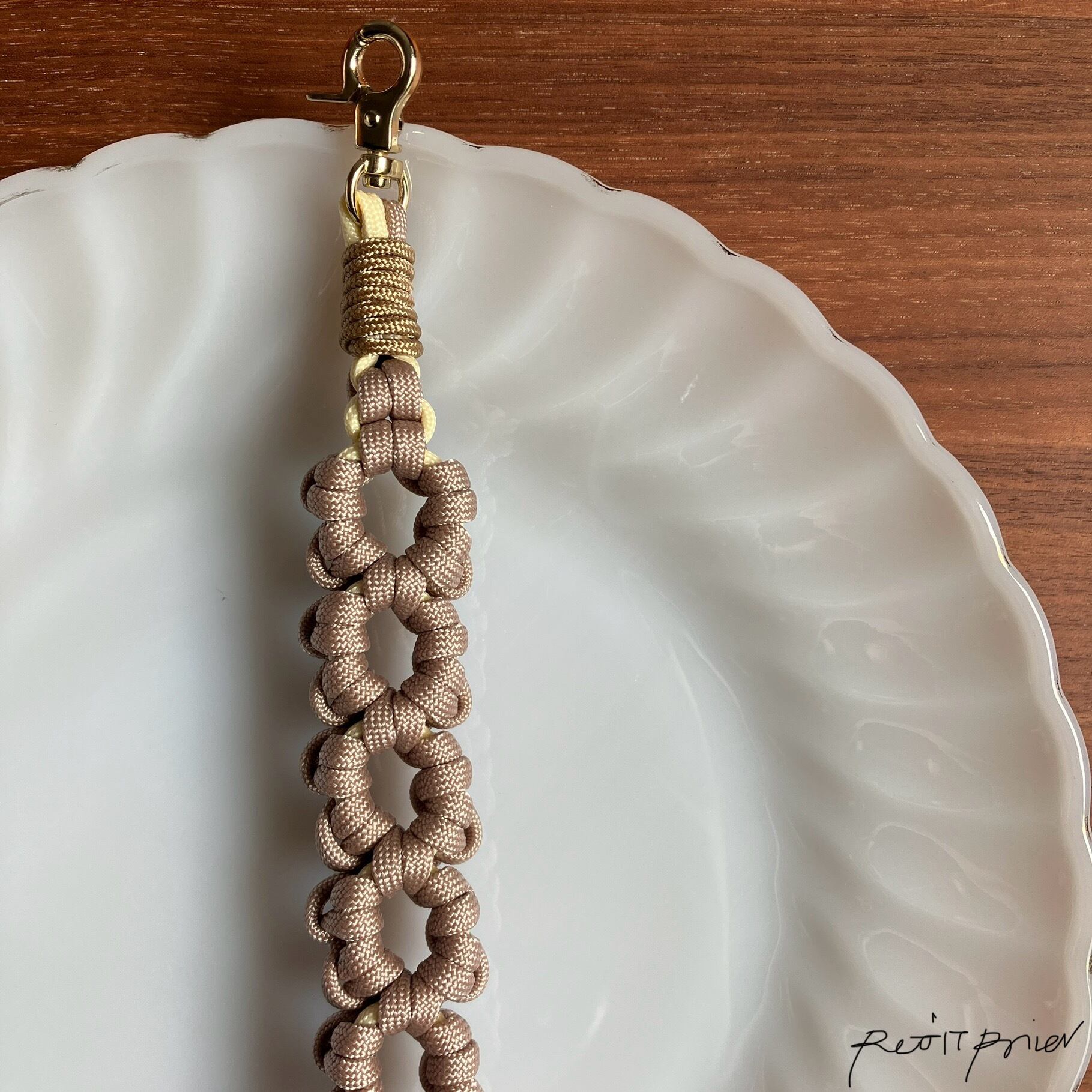 №19. パラコードスマホハンドストラップ ー花冠ー(くすみピンク)※延長ストラップオプション