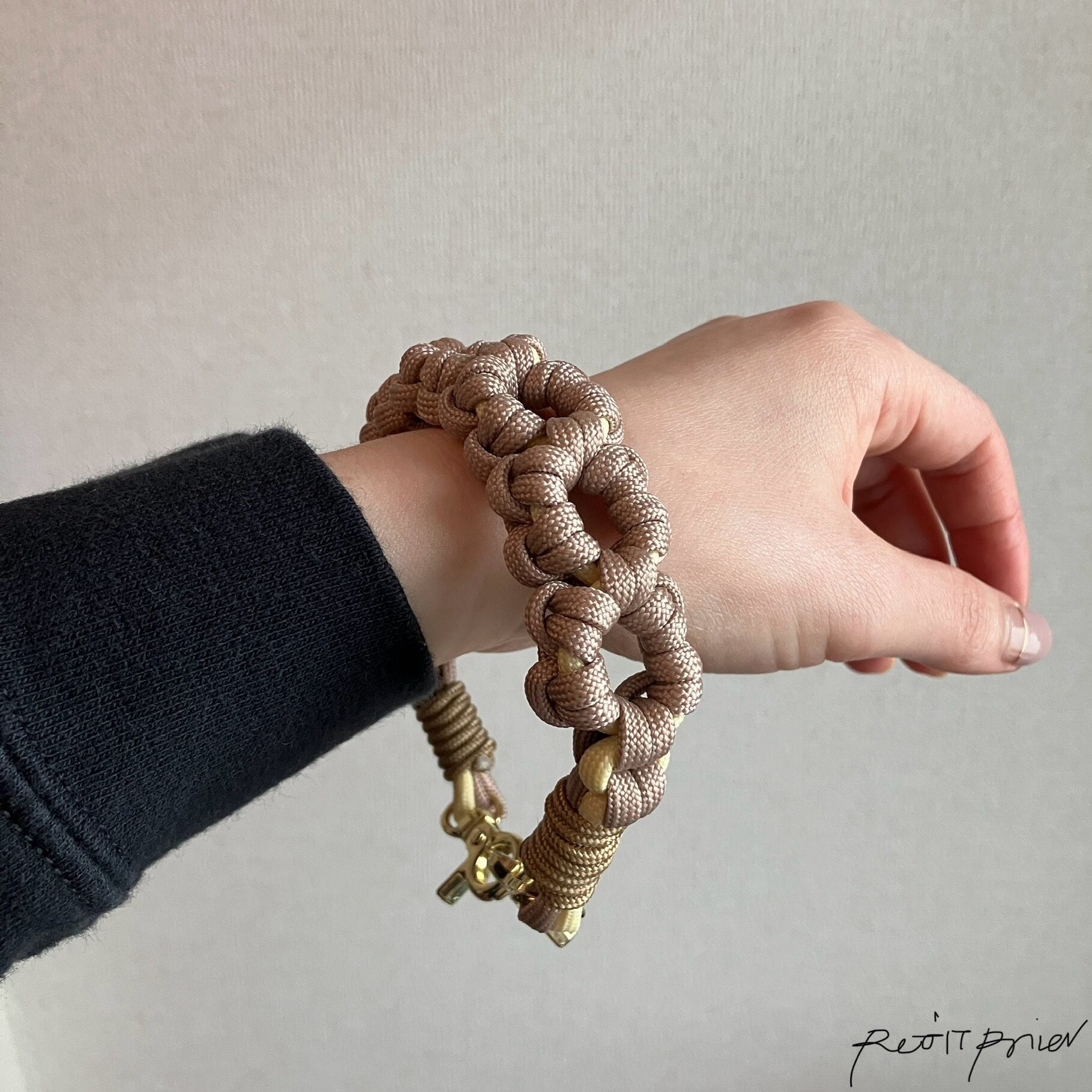 この商品は、パラコードという登山やアウトドアに必須の素材を使用して編み上げています。