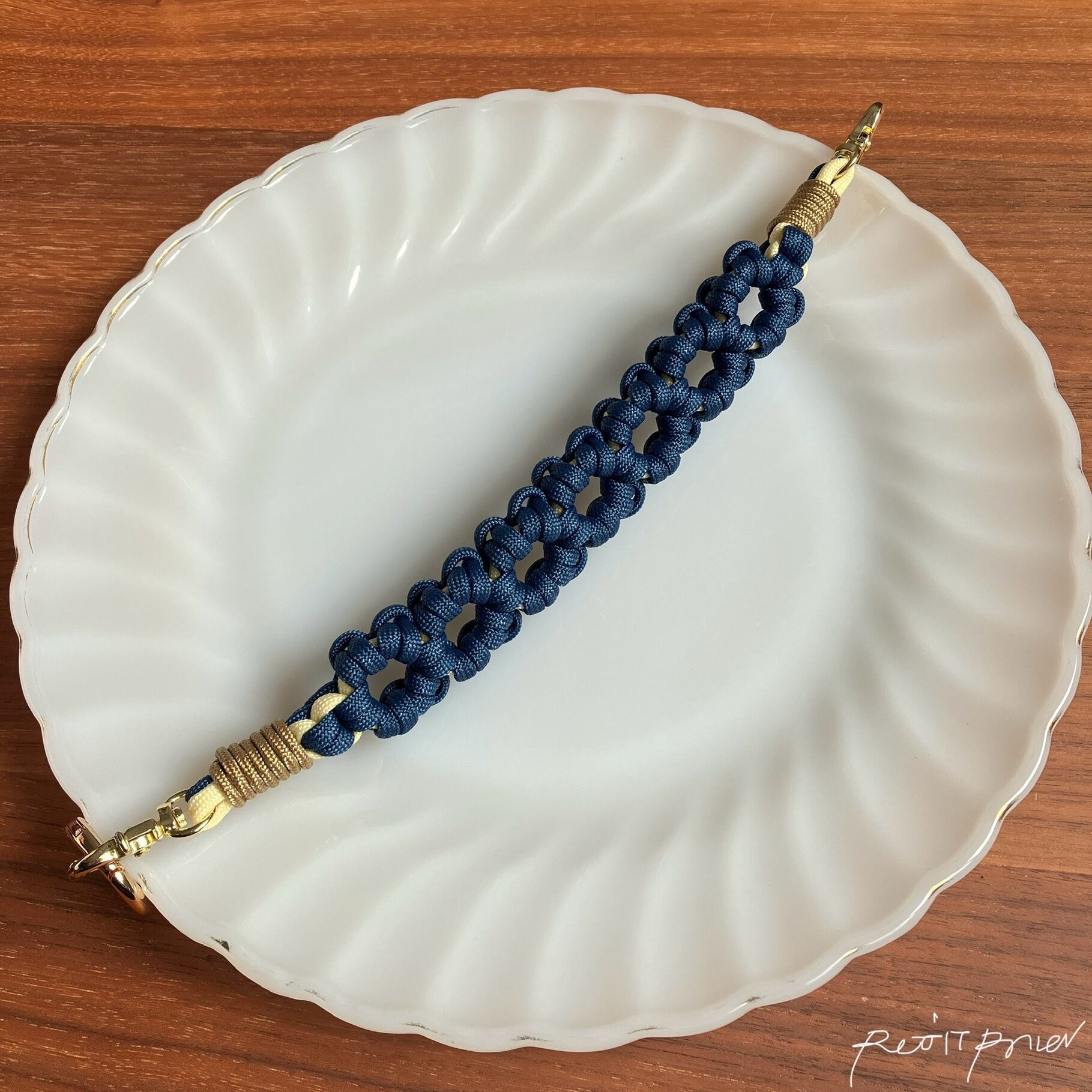 №32. パラコードスマホハンドストラップ ー花冠ー(ネイビー)※延長ストラップオプション