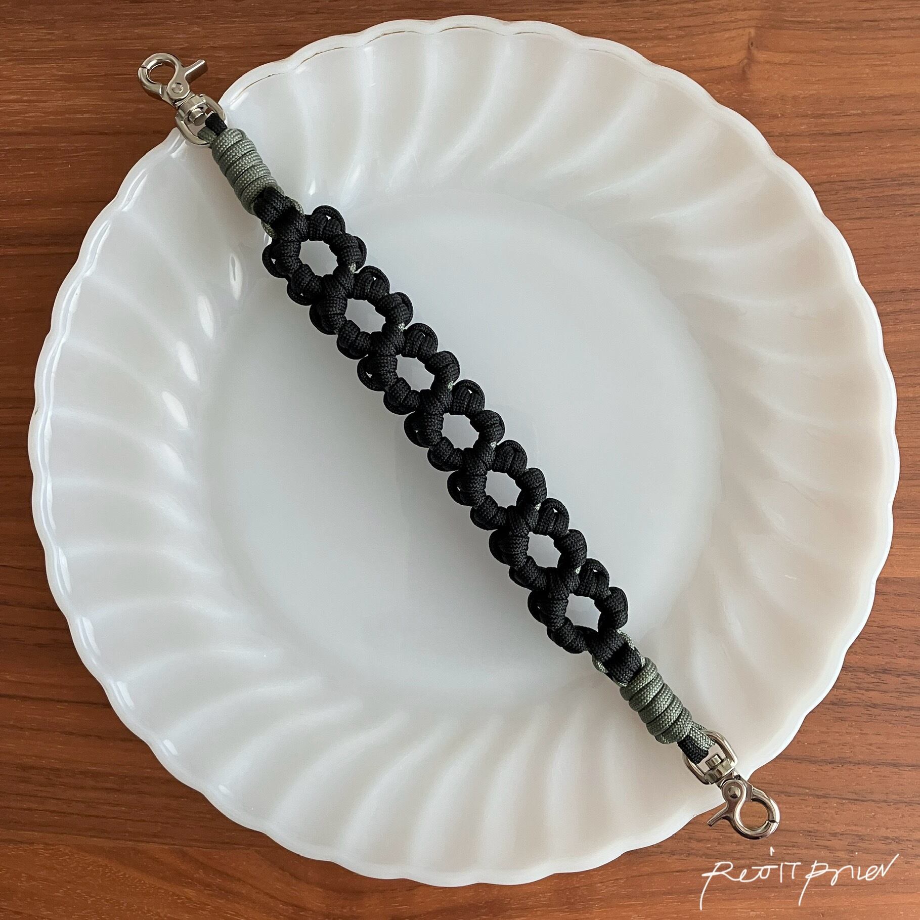 №33. パラコードスマホハンドストラップ ー花冠ー(ブラック)